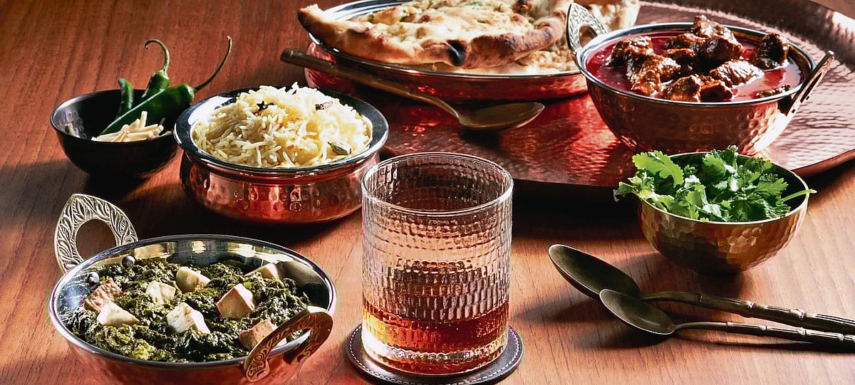 • Methi dana risotto with saffron butter—earthy fenugreek softened by floral saffron; whisky spices complement